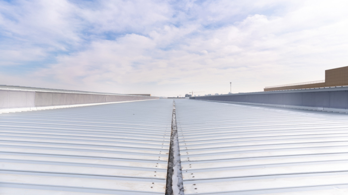 項目屋面系統采用現場(chǎng)復合方式,底板選用冠洲品牌白灰色PE涂層鋼板,使車(chē)間內部整潔、明亮,外板我們?yōu)闃I(yè)主推薦使用了直立鎖縫820型,360°咬合工藝,板型采用固定支座隱藏式安裝,表面無(wú)螺釘穿透,使整個(gè)系統具有絕佳的氣密性及抗風(fēng)揭能力,面板材質(zhì)選用上海寶鋼AZ150高品質(zhì)鍍鋁鋅本色板,使工程在美觀(guān)、安全的基礎上,兼顧了經(jīng)濟性及耐久性。